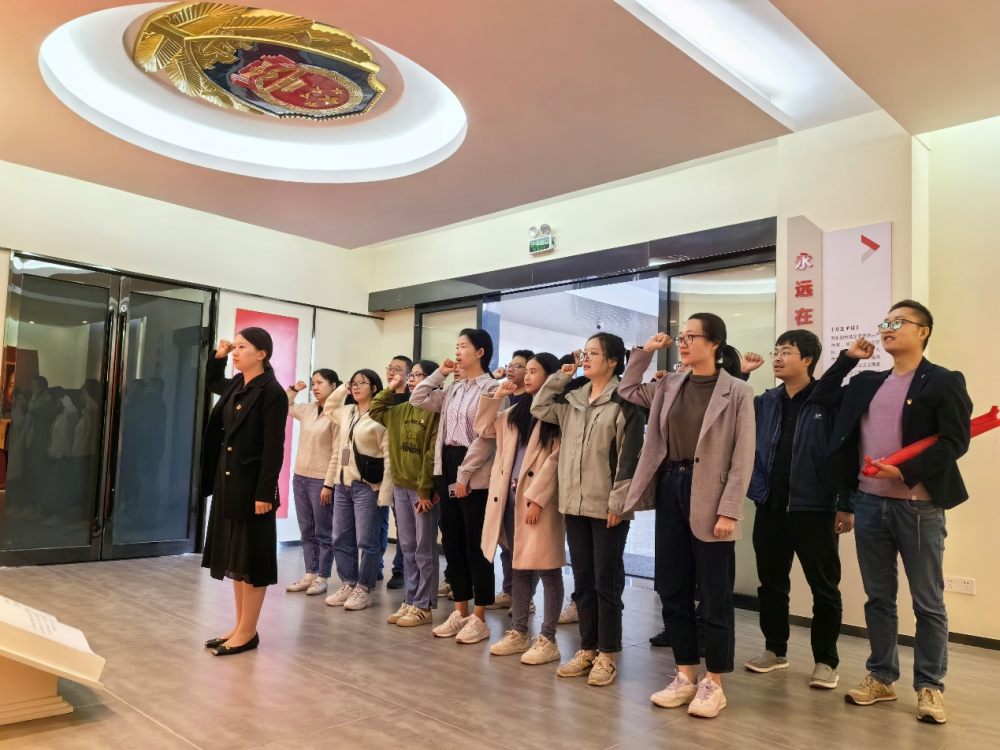 活动开始前,全体党员干部在党支部书记詹钰娜的带领下,重温入党誓词,牢记初心使命。
