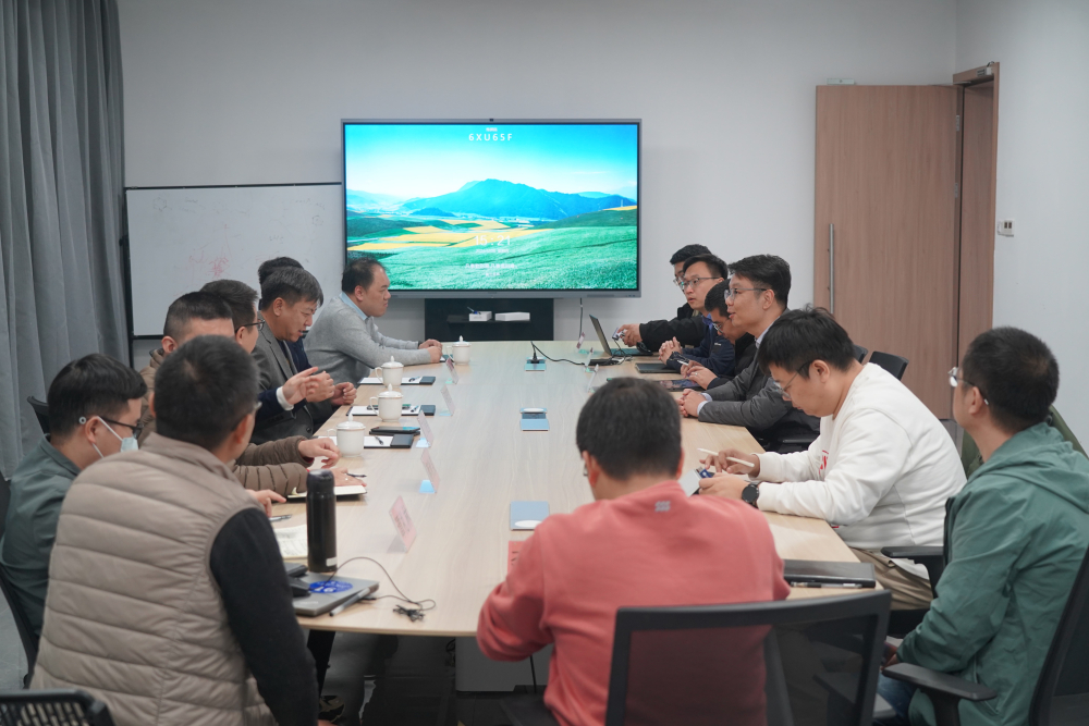 随后,科研管理部负责人闫义彬博士主持召开座谈会,对马廷江常务副总经理一行的到访表示热烈地欢迎,并就实验室的体制机制、人才培养、科技创新、成果转化等方面作了详细的介绍。汕头实验室“新化工”综合研究平台、超声微反应器团队、MOF 材料团队、可降解塑料团队、功能复合材料团队、丙烷脱氢团队、拉曼光谱仪团队及锂电池补锂材料团队等团队负责人讲解技术研究进展及成果转化情况。