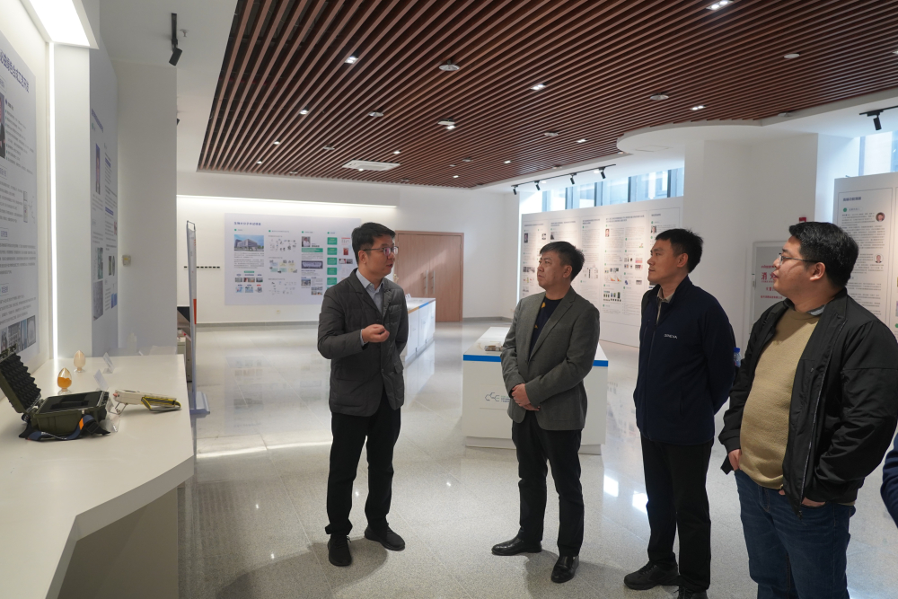 马廷江常务副总经理一行先后在综合楼A栋听取了实验室建设情况介绍,了解实验室的成立背景、发展历程、组织架构、研究队伍、设施设备和代表性科研项目等,参观了手持式透视拉曼光谱仪、超声微通道纳米材料合成仪、手性药物合成催化剂、新型锂电池补锂剂等科技成果展示区;在科研楼E栋“新化工”综合研究平台了解大型科学仪器共享平台仪器配备情况和运营规划;在科研楼B栋观摩了科研实验的建设情况,深入了解化学实验室的条件设施和科研团队的阶段性成果。